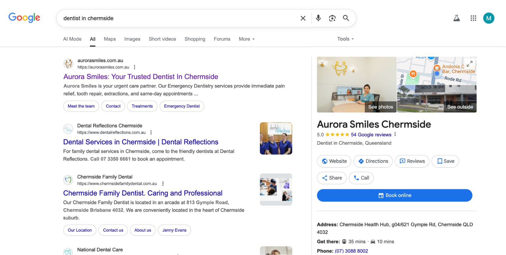 Ranked #1 for “Dentist in Chermside” within 4 months