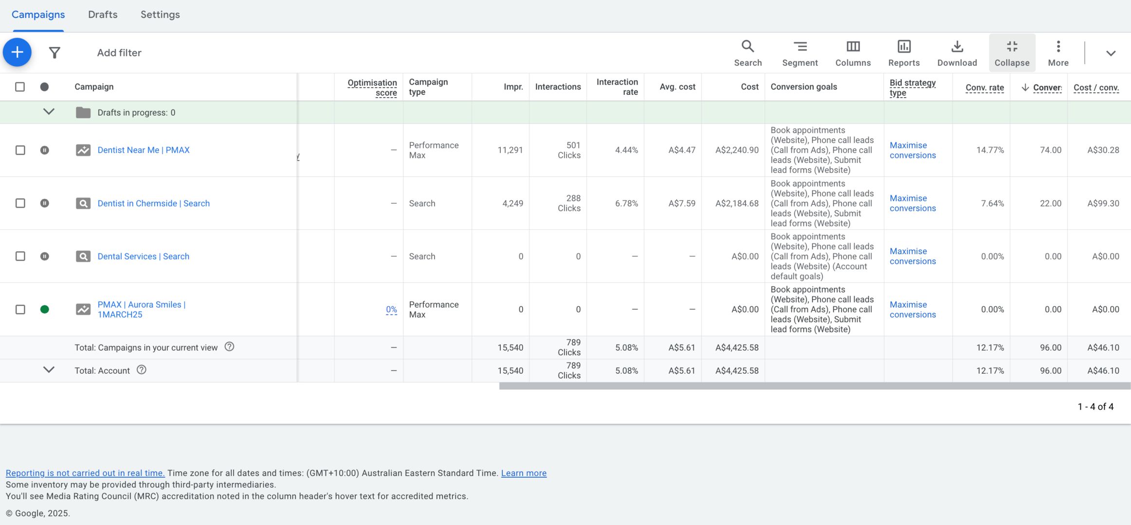 Aurora Smiles didn’t need a rescue mission. They needed a performance-led growth engine — and we delivered exactly that. With the right blend of search dominance, reputation automation, and smart ads, they’re now the most visible and trusted dental clinic in Chermside.