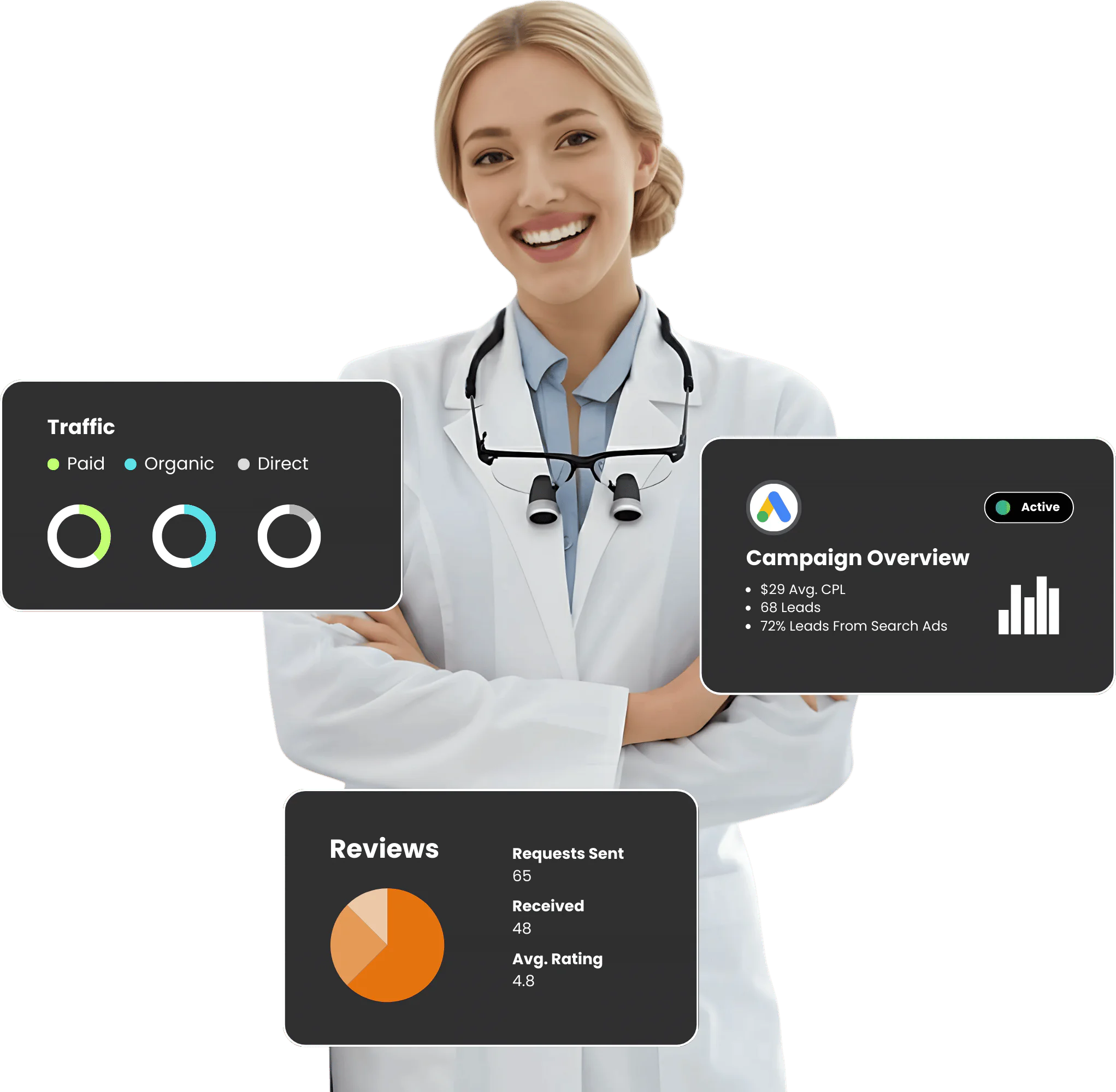 A/B tested with time-limited promos like “Free Consults” or “New Patient Offers.”